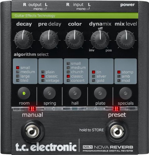 The NR-1 Nova Reverb is a voucher for the undisputed tonal quality only known from TC products. This pedal offers you 5 different stereo reverb types - room, spring, hall, plate and specials